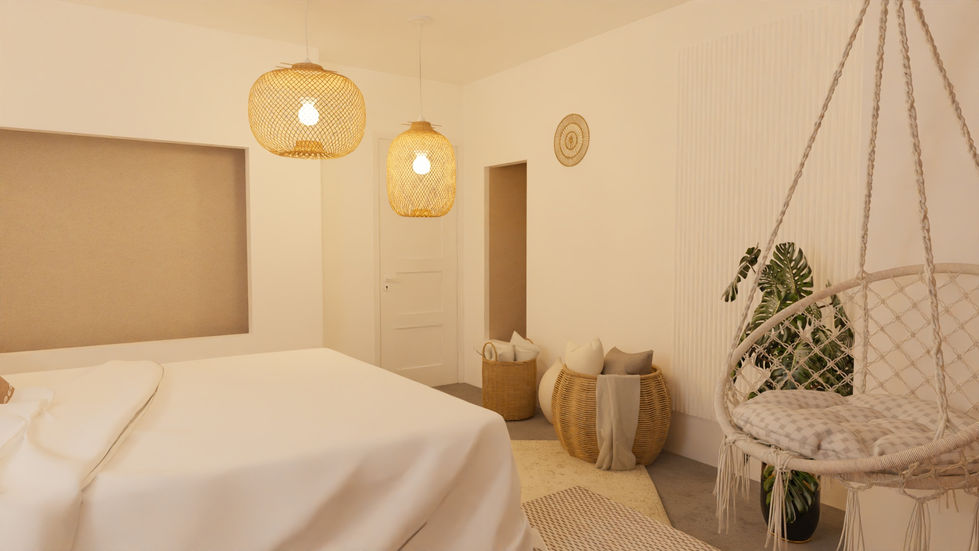 Aménagement d'une chambre parentale, en collaboration avec un expert feng shui, suite à une demande d'un particulier.